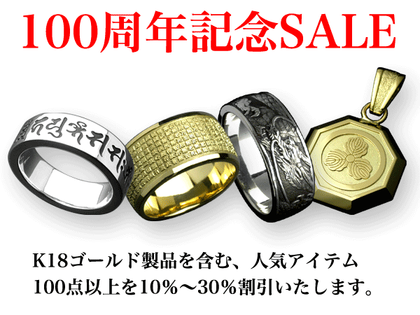 創業100周年を記念してK18金アイテムを含む人気アイテム100点以上を10%~30%OFFで販売いたします。 10,000円以上お買い上げの方には特製キーリングをプレゼント。(数が無くなり次第終了) 【更新情報】 5月3日・商品追加しました。