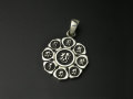 曼荼羅を表現したペンダントトップ。 中央には胎蔵界大日如来を表す「アーク」。 その周りには4体の如来と4体の菩薩を表す梵字を配置しています。 大きさは100円玉ぐらいで軽い為、つけているのを忘れそうです。 男女問わず人気の商品です。 裏面は何も彫刻のされていない鏡面仕上げとなっております。 お好みで、名入れをする事が可能です。 ※別料金 →裏面梵字名入れオプションはこちら <サイズ> 縦×横:22mm×22mm 厚み:約2mm 重量:約6.7g 材質:シルバー950 ※チェーンは別売りです。 →チェーンのお買求めはこちら