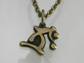 守護梵字「タラーク」の形に削り出したペンダントです。 立体的に仕上げられたそのフォルムは、息を呑む迫力さえ感じさせてくれます。 胸元で輝く「タラーク」が、貴方の魅力をさらに引き出してくれること間違いございません。 黄銅を使用し、古び仕上げを施す事により、より雰囲気漂う仕上がりになりました。 <サイズ> 縦×横:18.3mm×19.25mm 重量:約3.7g 材質:黄銅 チェーンは別売りです。