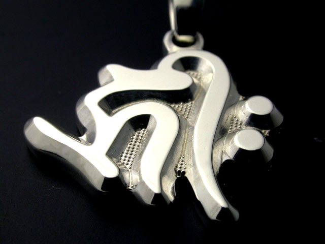 職人が守護梵字「キリーク(子年:千手観音菩薩、戌・亥年:阿弥陀如来)」の形に削り出したペンダントです。 立体的に仕上げられたそのフォルムは、息を呑む迫力さえ感じさせてくれます。 胸元で輝く「キリーク」が、貴方の魅力をさらに引き出してくれること間違いございません。 鏡面仕上げと魚々子模様のコントラストが高級感を感じさせる仕上りとなっております。 <サイズ> 縦×横:約19.6mm×18.5mm 重量:約5.0g 材質:シルバー925 ※こちらの商品は梵字名入れ不可となります。 ※チェーンは別売りです。