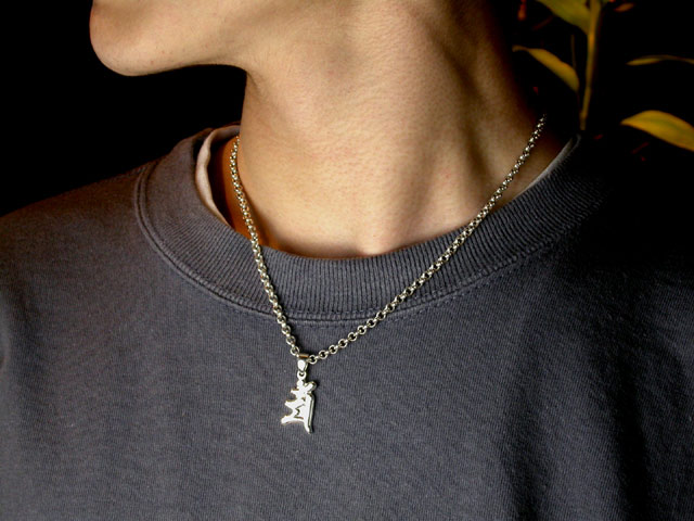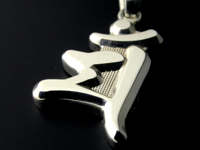 職人が守護梵字「マン(文殊菩薩)」の形に削り出したペンダントです。 立体的に仕上げられたそのフォルムは、息を呑む迫力さえ感じさせてくれます。 胸元で輝く「マン」が、貴方の魅力をさらに引き出してくれること間違いございません。 鏡面仕上げと魚々子模様のコントラストが高級感を感じさせる仕上りとなっております。 <サイズ> 縦×横:約23.8mm×13.0mm 重量:約4.3g 材質:シルバー925 ※こちらの商品は梵字名入れ不可となります。 ※チェーンは別売りです。