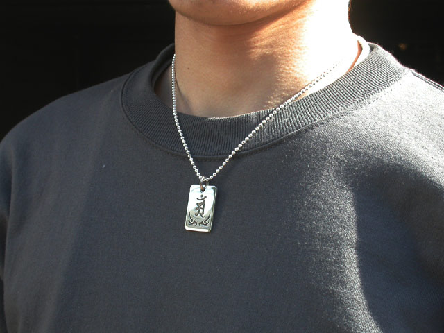 彫銀の中でも絶大な人気を誇る「守護梵字トライバルペンダント」 密教には絶対不可欠な「梵字」と トライバル種族が古くより伝えてきた「トライバル柄」が 彫銀熟練技によって彫刻され、ハイクオリティな梵字ペンダントが生まれます。 また、シンプルかつ大胆なデザインで男性は勿論、女性にもオススメのアイテムです。 裏面は何も彫刻のされていない鏡面仕上げとなっております。 お好みで、名入れをする事が可能です。 また、別の守護梵字を彫刻することで、リバーシブル仕様にする事もできます。 ※裏面の追加彫刻は別料金となります →裏面梵字名入れオプションはこちら <サイズ> 縦×横:28mm×19mm 厚み:約2mm 重量:約9.2g(バチカン含む) 材質:シルバー950 ※チェーンは別売りとなります。 →チェーンのお買求めはこちら