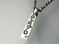 雰囲気の異なる3種類のトライバルを彫刻したペンダントトップ 「守護梵字トライバルペンダント・SLIM No.3」です。 No.1、No.2と比べて柔らかい曲線のラインで構成されたトライバルデザイン。 贈り物や女性にもオススメです。 裏面は何も彫刻のされていない鏡面仕上げとなっております。 お好みで、名入れをする事が可能です。 ※別料金 →裏面梵字名入れオプションはこちら <サイズ> 縦×横:35mm×7mm 厚み:約2mm 重量:約5g 材質:シルバー950 →その他のチェーンのお買求めはこちら