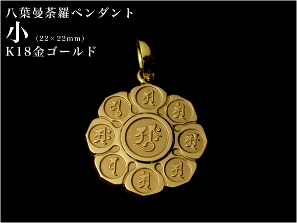 曼荼羅(mandara)とは、古代インドのサンスクリット語であり、音写して漢字で「曼荼羅」「曼陀羅」と書きます。 【manda(マンダ)】は「本質」「心髄」「醍醐」などの意味し、【la(ラ)】→「所有」を意味しております。 日本伝来の密教では「輪廻具足」と訳し、種々様々なものが車輪の様に雑然とではなく、 秩序整然と中心に向かって集まり円満に調和している意味とされていました。 このペンダントの曼荼羅は胎蔵界曼荼羅に描かれた中心部分の中台八葉院をモチーフにしております。 → 【曼荼羅について】 <サイズ>