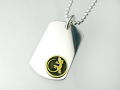 表に黄銅製のエンブレムを配置したドッグタグです。 プレート本体はシルバー製のため、使い込む程に汚れや傷がつきますが、 それが「味」となり自分だけのオリジナルドッグタグとなります。 世界でたった1つのIDプレートとして、贈り物としても最適です。 バッグに着けたり、グループや仲間同士で同じプレートを揃えるのもオススメ!! レーザー刻印と違い、直接深く彫り込んでおりますので傷にも強く、また、磨き直しが可能です。 裏面に貴方だけのパーソナルIDをお入れします。 ※英数字大文字のみ・ゴシック体 <例>