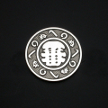 歌舞伎役者「七代目 市川團十郎(しちだいめ いちかわだんじゅうろう)」が好んで使った 歌舞伎文様「鎌」と「輪」と「ぬ」の字で「構わぬ」と読ませる洒落と、 当時の江戸が世界最大の都市でありながら、非常に火事の多い町であったことから 活躍した「町火消し」の組織【いろは47組】から「一番」を中心に配置しました。 文字の間には江戸小紋としてよく用いられる「格子柄」を施しており、 江戸情緒たっぷりのゴルフマーカーです。