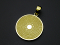 般若心経の本文276文字を円状に1文字わずか0.7mmのサイズで刻んだK18金製のペンダントです。 材質は国内で精錬されたK18金ゴールドの圧延材と呼ばれる、圧力をかけて延ばした地金を使用しておりますので、地金の密度が高く傷が付きにくくなっております。 尚、こちらの商品をお買い上げ頂いた方には文字が大きく見えるように拡大鏡をお付けします。 サイズ 直径:約22mm(プレート部分) 厚み:約2mm 材質:K18金ゴールド 文字サイズを小さくすることにより女性でも気軽に着けられるサイズにする事が出来ました。また円状に文字を配置することによりデザイン性もアップしております。 中央のスペースにはお好みで石留めを施す事が可能です。