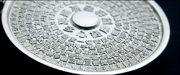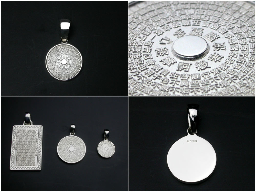 直径14mmのPt900プラチナ製プレートの中に般若心経の本文276文字を刻んだペンダントです。