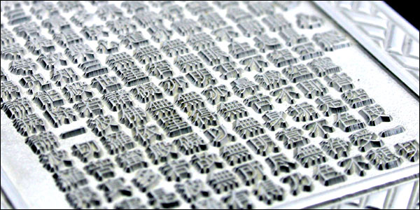 彫銀独自の超精密微細彫刻によって刻まれた文字の大きさはわずか0.9mm。よくレーザー彫刻などで表面に軽く傷をつける程度のものがございますが、当店のアイテムは凸文字となっておりますので文字をはっきりと認識することが可能です。