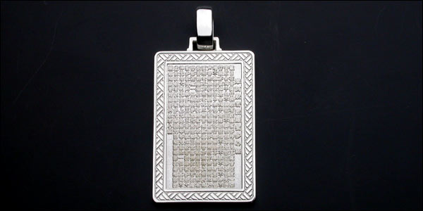 般若心経の本文276文字を刻んだペンダントです。彫銀独自の超精密微細彫刻によって刻まれた般若心経は1文字わずか0.9mmという驚くべきサイズです。