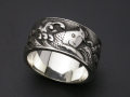 武士の魂とも言える刀の装具の一部である「縁頭」を当時の風合いを損なわぬようにリングへと造り変えました。 「鯉の滝登り」…誰もが一度は耳にしたことがあるかと思いますが、古代中国では黄河の急激な滝を登りきり、登竜門をくぐった鯉が天に昇って龍になるという言い伝えがありました。 リング幅 約12mm ※一部作りが粗い部分がございますが、当時の風合いを損なわないようにあえて手を加えておりません。ご了承下さいませ。 |