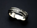武士の魂とも言える刀の装具の一部である「縁頭」のあえて一部分を切り取り、職人技の基本とも言える「魚々子」の技法に光を当てたリングです。 リング幅 約7mm |