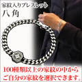 八角形のプレートに家紋を彫刻したシルバーブレスレットです。 |