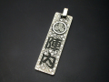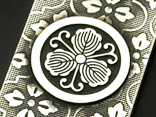 20,000種類あると言われる家紋のほとんどに対応が可能。 サイズ:縦55mm、横16mm 家紋の直径:約13mm 材質:シルバー950、いぶし仕上げ ※ チェーンは別売りです。こちらでお買求め下さい。→オススメチェーン |
