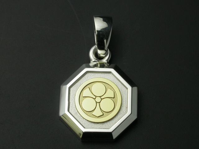 K18ゴールドの円柱状エンブレムに家紋を彫刻し、シルバーの八角プレートにはめ込みました。