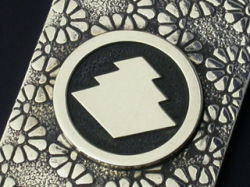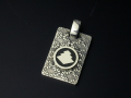 20,000種類あると言われる家紋のほとんどに対応が可能。 サイズ:縦28.5mm、横19mm 家紋の直径:約13.5mm 材質:シルバー950、いぶし仕上げ ※ チェーンは別売りです。こちらでお買求め下さい。→オススメチェーン |