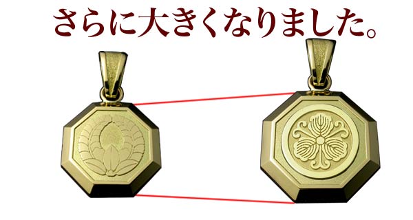 K18金イエローゴールドで作られた「家紋ペンダント・八角」の特大サイズのペンダントトップです。