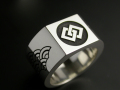 上面に家紋、その両脇に江戸小紋を彫刻したシャープなフォルムリングです。
