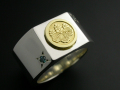 余計な装飾は省いた平打ちリングのシャープなフォルムと上面にさり気なく家紋を彫刻したゴールドプレートが絶妙なコントラストを醸し出します。