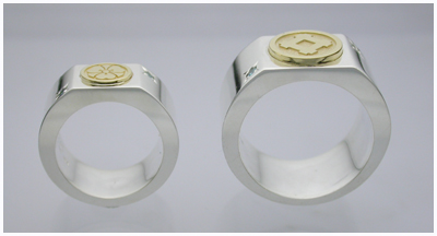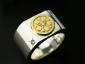 余計な装飾は省いた平打ちリングのシャープなフォルムと上面にさり気なく家紋を彫刻したゴールドプレートが絶妙なコントラストを醸し出します。