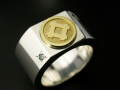 余計な装飾は省いた平打ちリングのシャープなフォルムと上面にさり気なく家紋を彫刻したゴールドプレートが絶妙なコントラストを醸し出します。