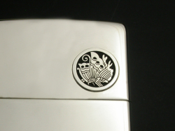 | 純銀タイプのジッポライターの蓋部分に家紋を配置しました。家紋の直径は約11mmでさり気なく自己主張できる大人のジッポライターです。 彫刻する家紋は20,000種類あると言われる家紋のほとんどに対応が可能。 家紋の直径:約11m 材質 エンブレム部分:シルバー950製 ※