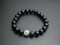お好きな漢字1文字を2箇所に彫り込んだ銀珠とオニキスを組み合わせた数珠です。 数珠は古代インドのバラモン教で用いられていた道具が原型と言われており、 その後中国に伝わり、日本へは飛鳥時代に仏教伝来と共に伝わったと言われております。 レーザー彫刻と違い、刃物で直接彫り込んでおりますので深い彫りとなっております。 漢字は「楷書体」「勘亭流」「篆刻書体」「印相体」の4種類の中からお選び頂けます。 (1文字ずつ異なる漢字を彫刻する場合は+2,100円となります。) オニキスには邪念や悪い気を払う力があると言われ、古くから 魔除けや戦いの護符として使われておりました。 またオニキスを使用したリングやペンダントも多くファッション アイテムとしても人気があります。 ブレスコードには耐久性に優れたウレタンゴムを使用しており、それを4重にすることにより、 ゴム切れ時に珠がバラバラにならないように配慮してあります。 水晶を使用したタイプもございます。 → 漢字入り・数珠ブレス・水晶 【材質・サイズ】 銀珠:シルバー925 直径12mm オニキス:直径10mm ブレスコード:ウレタンゴム×4重 お使いになる前にこちらをお読み下さい