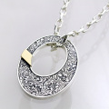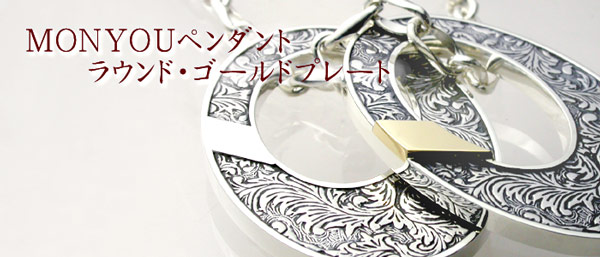 彫銀独自の技法で楕円形に切り出した銀板に緻密な和風柄を施したペンダントです。 文様の中に配置されたK18ゴールドのプレートがワンランク上の高級感を醸し出しております。