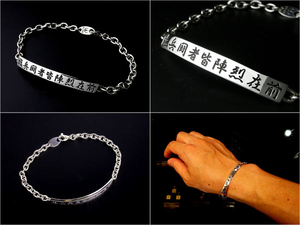 | 九字真言(九字マントラ)を深く彫り込んだシルバー950製のブレスレットです。 シンプルでシャープなフォルムはスタイルを選ばず幅広いシーンでお使い頂けます。 厄除け、お守り代わりとしてもお使い下さい。 |