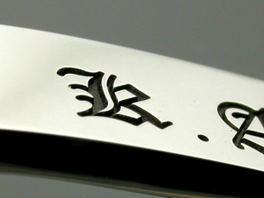 鏡面のプレートにイニシャルを彫刻した「イニシャルブレスレット」です。 彫刻したイニシャル部分にはいぶし加工を行いますので、 シルバーとのコントラストが非常に美しいブレスレットです。 深く彫りこまれた文字は江戸伝統の彫刻技術を継承する熟練職人が、 時間をかけ丁寧に彫刻いたしますので、通常のご使用で消える事がございません。 記念日などのプレゼントにもピッタリです! イニシャルはスタイリッシュなオールドイングリッシュ書体にて彫刻致します。 また、通常イニシャルでは使用されない文字での彫刻も可能の為、 イニシャル以外のお好きなアルファベットもお選びいただけます。 【全長】メンズ:230mm、210mm、180mm 【プレートサイズ】長さ:46.0mm 幅:8.0mm 厚み:2mm 【イニシャルのサイズ】約4mm ※彫刻する文字により若干異なります 【素材】 プレート、チェーン:シルバー950 金具(S字フック):シルバー925 彫刻するイニシャルは、【備考欄】へご入力ください。 その他、オプションで全面にオリジナルデザインの彫刻もできます。 ※別料金となりますので別途ご相談ください。 ※この商品は裏面に彫刻は出来ません、ご了承ください。 ■この商品よりサイズの大きいブレスレット →イニシャルブレスレット・SizeL ■この商品よりサイズの小さいブレスレット →イニシャルブレスレット・SizeS ※ご購入の前にお読みください※ ※留め金はS字パーツを通すだけのタイプとなりますので、お使いの状況によっては外れてしまう事がございます。 ご注意くださいませ。 |