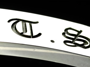 鏡面のプレートにイニシャルを彫刻した「イニシャルブレスレット」です。 彫刻したイニシャル部分にはいぶし加工を行いますので、 シルバーとのコントラストが非常に美しいブレスレットです。 深く彫りこまれた文字は江戸伝統の彫刻技術を継承する熟練職人が、 時間をかけ丁寧に彫刻いたしますので、通常のご使用で消える事がございません。 記念日などのプレゼントにもピッタリです! イニシャルはスタイリッシュなオールドイングリッシュ書体にて彫刻致します。 また、通常イニシャルでは使用されない文字での彫刻も可能の為、 イニシャル以外のお好きなアルファベットもお選びいただけます。 【全長】メンズ:180mm レディース:160mm 【プレートサイズ】長さ:40.0mm 幅:6.5mm 厚み:2mm 【イニシャルのサイズ】約4mm ※彫刻する文字により若干異なります 【素材】 プレート、チェーン:シルバー950 金具(S字フック):シルバー925 彫刻するイニシャルは、【備考欄】へご入力ください。 その他、オプションで全面にオリジナルデザインの彫刻もできます。 ※別料金となりますので別途ご相談ください。 ※この商品は裏面に彫刻は出来ません、ご了承ください。 ■この商品よりサイズの大きいブレスレット →イニシャルブレスレット・SizeL →イニシャルブレスレット・SizeM ※ご購入の前にお読みください※ ※留め金はS字パーツを通すだけのタイプとなりますので、お使いの状況によっては外れてしまう事がございます。 ご注意くださいませ。 |