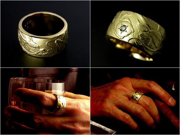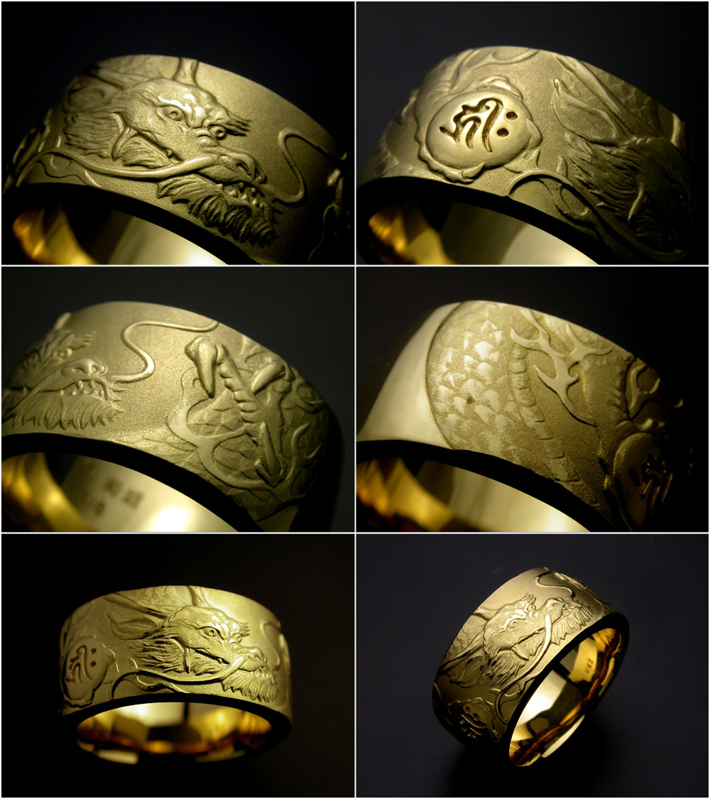 【昇龍】の緻密なレリーフを施したゴールドリングです。 |
