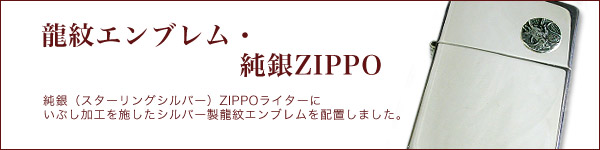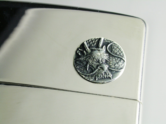 純銀タイプのZIPPOにいぶし加工を施したシルバー製の「龍紋・エンブレム」を配置しました。