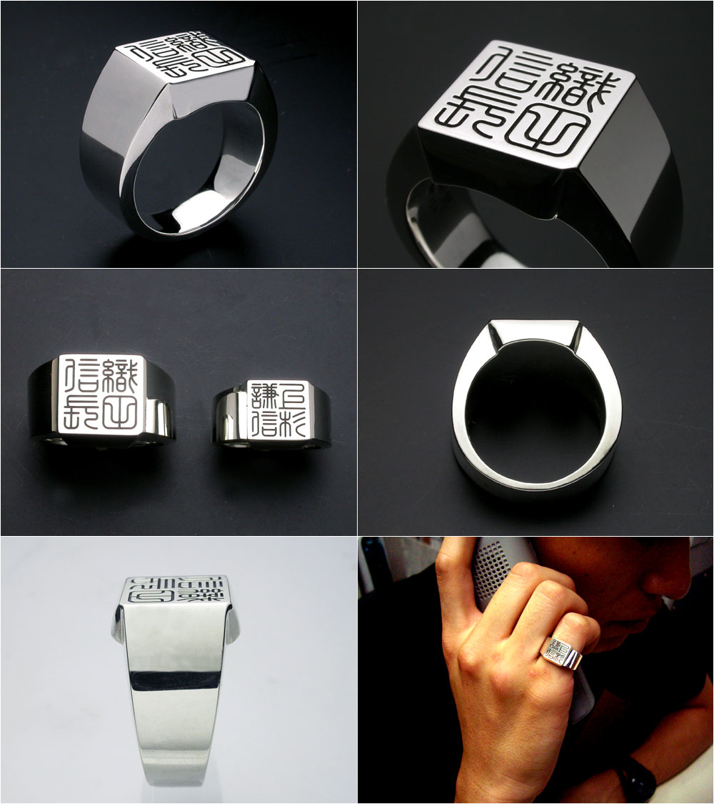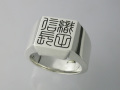 古く中国から伝わりその独特の味わいが 今なお好まれている篆刻書体で名前を彫刻したリングです。 シンプルでシャープなフォルムが篆刻書体と良く合います。 メンズサイズ(#15~#27)とレディースサイズ(#7~#13)があります。 ペアリングとしてもお使いになれます。 メンズ 最大幅15.5mm、最小幅7mm 名前を彫刻する部分13mm レディース 最大幅11.9mm、最小幅:5mm 名前を彫刻する部分10mm 材質:シルバー925 ※この商品は名前が漢字で3,4,5文字の方のみご注文いただけます。 但し、3文字などの場合は「○○○印」という風にすることも出来ます。 ![]() 3文字、4文字、5文字の場合の彫刻イメージは上記の通りです。 篆刻書体について ご注文のお客様には注文確認メールをお送りする際に、 ご希望の文字を篆刻書体に変換したものをメールに添付させて頂きます。 |