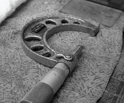 | ■マクロメーター マクロメーターという、計測器。 1/100mm単位が計測でき、金型の深さを調べる器具。 この計測器で、精度を測り、時計の裏蓋などの原型を作り、信頼を得てきた。 |