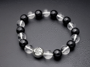 守護梵字を彫り込んだ銀珠とオニキスを組み合わせた数珠です。 →守護梵字について
