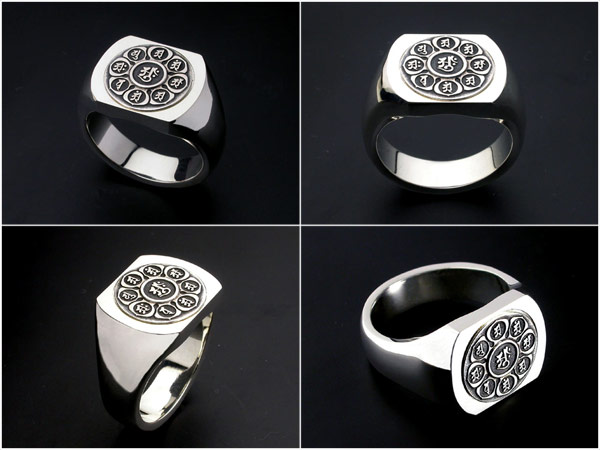 このリングの曼荼羅は胎蔵界曼荼羅に描かれた中心部分の中台八葉院をモチーフにしております。