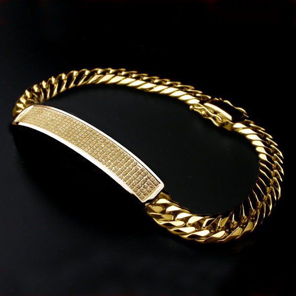 般若心経の本文276文字を刻んだK18ゴールド製のブレスレットです。 彫銀が江戸時代から受け継いだ伝統技法と最新技術を組み合わせて刻み込んだ般若心経は1文字わずか0.7mm!! 全長は230mmです。