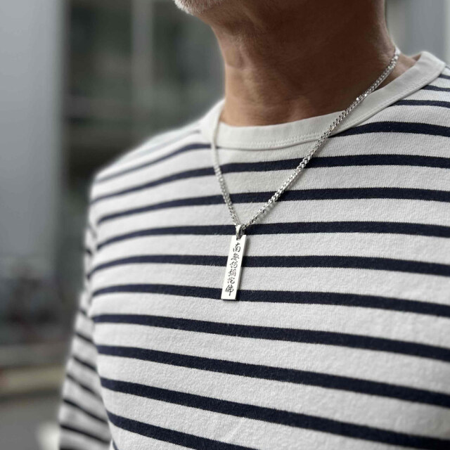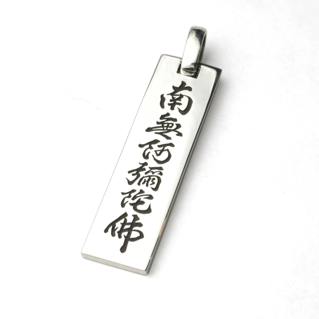 人々を極楽浄土へと導く阿弥陀如来への感謝を表す「南無阿弥陀仏」の文字を彫り込んだペンダントです。 裏面に漢字名入れや戒名彫刻をすることで、より思い入れのあるペンダントにすることも可能です。